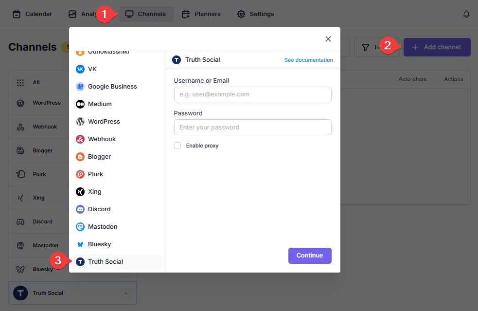 - Moreover, you can enable proxy or edit the proxy credentials without reauthorizing the channel to the plugin;